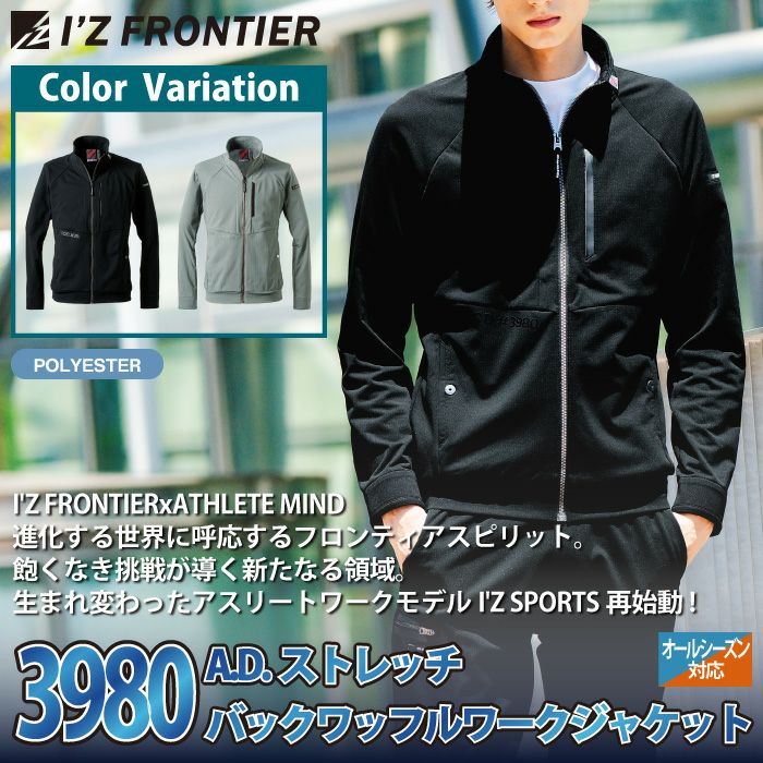 アイズフロンティア 作業服 作業着 アイズフロンティア 作業服 2025秋冬新作 3980 ストレッチバックワッフルワークジャケット S-4L オールシーズン 作業着 おしゃれ
