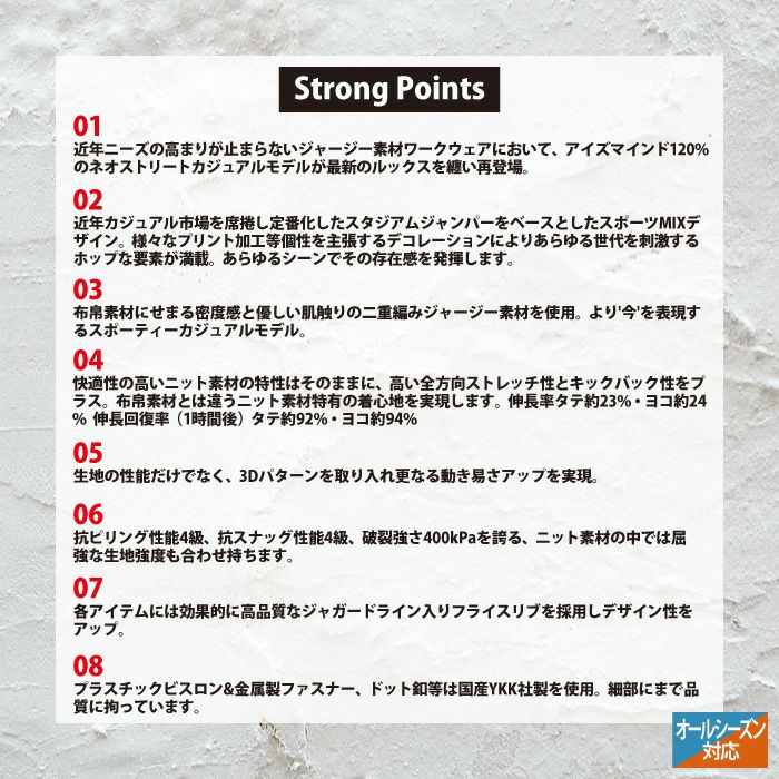 ◇布帛素材にせまる密度感と優しい肌触りの二重編みジャージー素材を使用 スポーティーカジュアルモデル