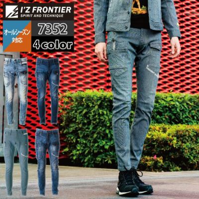 アイズフロンティア 作業服 2025秋冬新作 7352 ストレッチデニム3Dカーゴパンツ 73-101 オールシーズン 作業着 おしゃれ