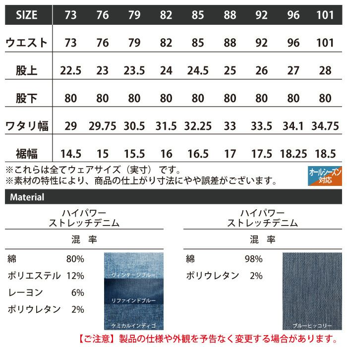 ◇色:ヴィンテージブルー・ブルーヒッコリー・リファインドブルー・ケミカルインディゴ