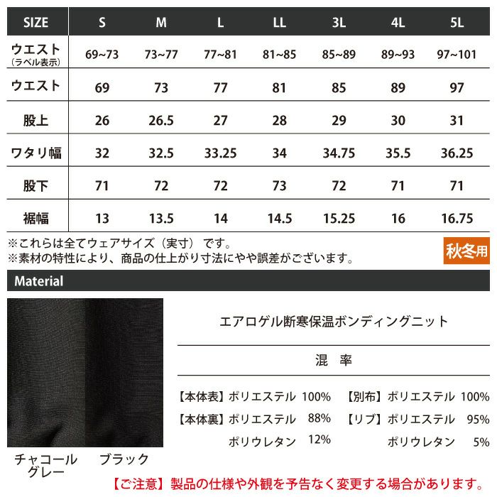 ◇素材:エアロゲル断寒保温ボンディングニット/表/ポリエステル100%・裏/ポリエステル88%・ポリウレタン12%