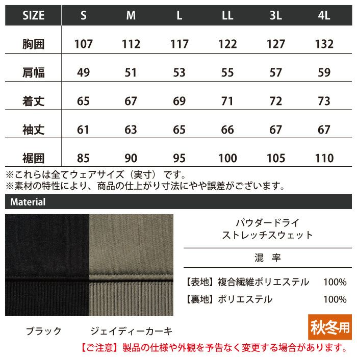 アイズフロンティア 作業服 作業着 アイズフロンティア 作業服 2025秋冬新作 8930 ストレッチスウェットフルジップフーディー S-4L 秋冬 作業着 おしゃれ