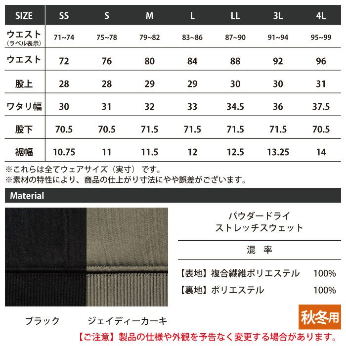 アイズフロンティア 作業服 作業着 アイズフロンティア 作業服 2025秋冬新作 8933 ストレッチスウェットジョガーパンツ SS-4L 秋冬 作業着 おしゃれ