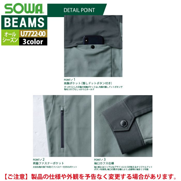 桑和 SOWA 作業服 U7722-00 長袖ブルゾン S-LL オールシーズン 作業着 ソーワ ワークウェア BEAMS ビームス