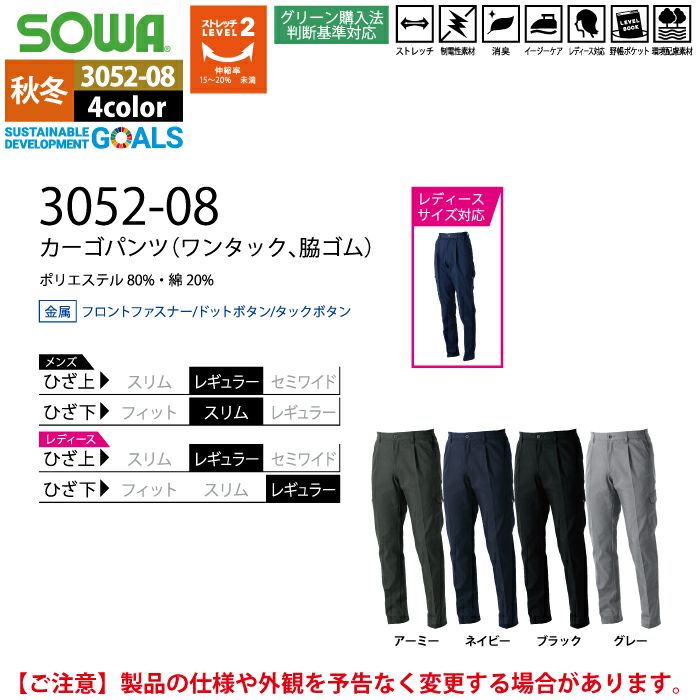 作業服 作業着 作業ズボン 秋冬用 桑和 SOWA 作業服 3052-08 カーゴパンツ 4L 秋冬 作業着 ソーワ ワークウェア