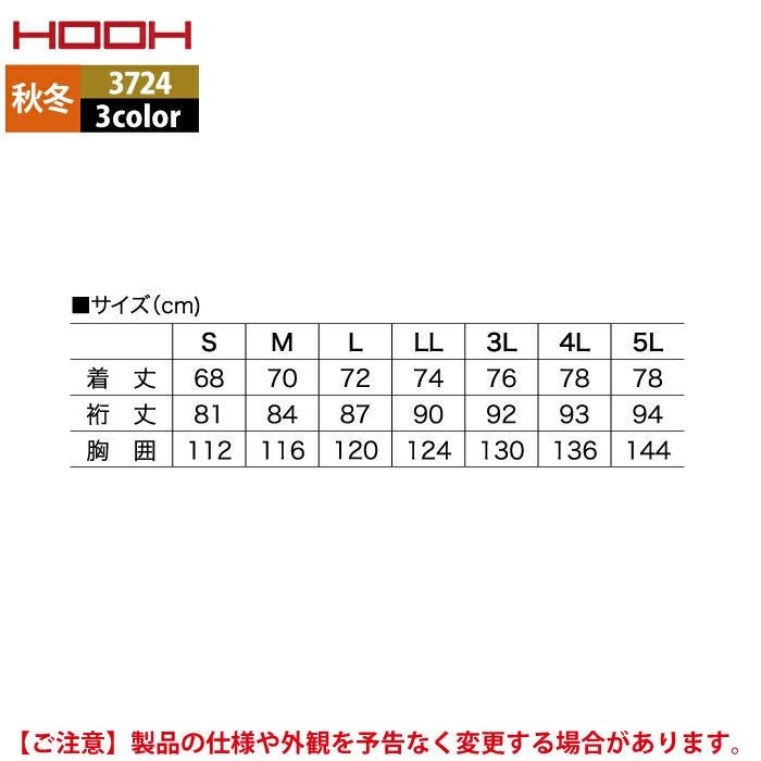 村上被服 HOOH 鳳凰 作業服 3724 アノラックパーカー 4L-5L 秋冬 作業着 おしゃれ 綿100 保温