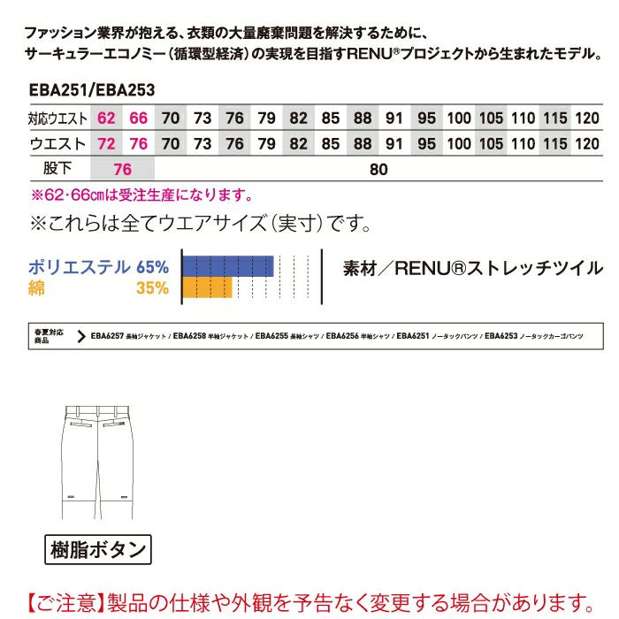 作業服 作業着 ビッグボーン bigborn 作業服 作業ズボン EBA251 ノータックパンツ 110-120 オールシーズン 作業着