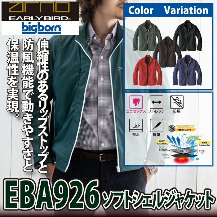 作業服 作業着 ビッグボーン bigborn 作業服 EBA926 ソフトシェルジャケット 4L オールシーズン 作業着
