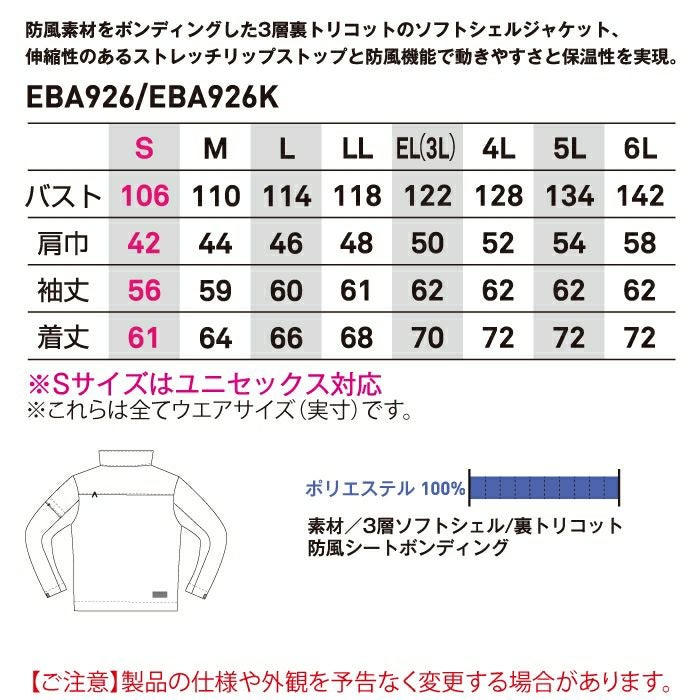 【EBA926 ソフトシェルジャケット】