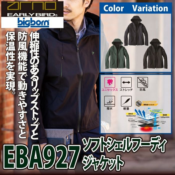 作業服 作業着 ビッグボーン bigborn 作業服 EBA927 ソフトシェルフーディージャケット 4L オールシーズン 作業着