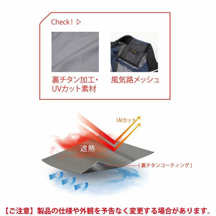 ◇裏チタン加工が紫外線・赤外線を大幅にカットし衣服内の温度上昇を抑える