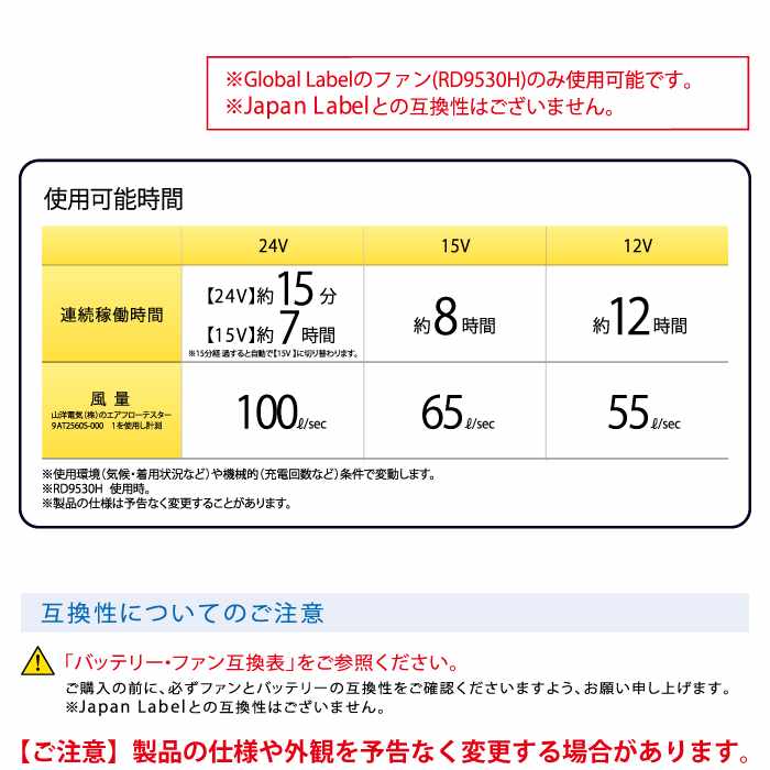 ◇Global Labelのファン(RD9530H)のみ使用可能・Japan Labelとの互換性はございません