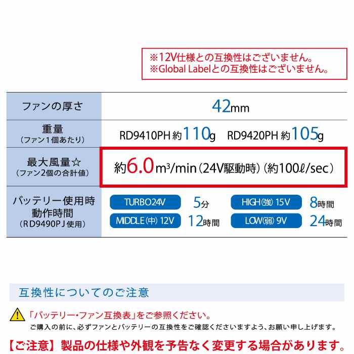 ◇最大風量:約6.0立方メートル/min(24V駆動時)(約100L/sec)