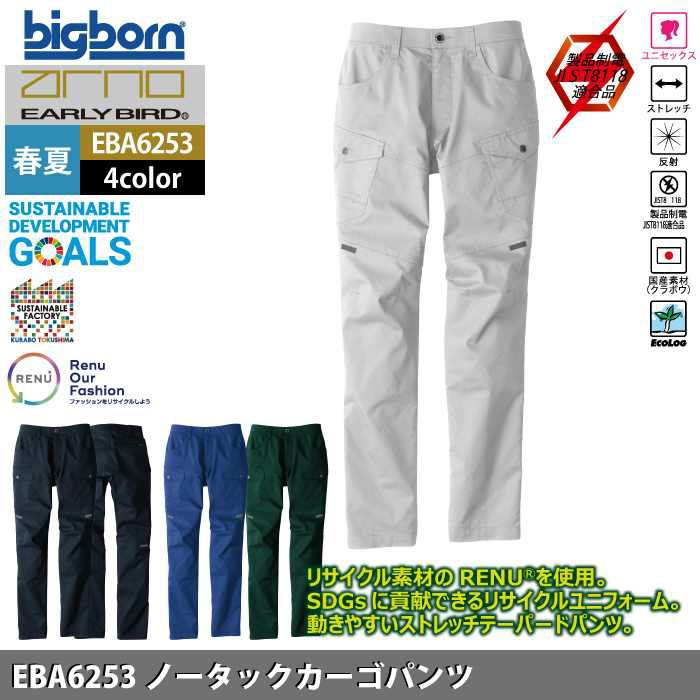 ビッグボーン 作業服 作業着 ビッグボーン bigborn 作業服 作業ズボン EBA6253 ノータックカーゴパンツ 110-120 春夏 作業着