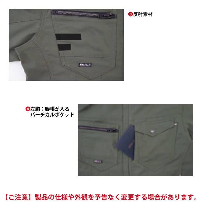 ◇機能:背当てメッシュ・ノーフォークメッシュ・反射素材・左胸/野帳が入るバーチカルポケット・内ポケット・IDホルダーループ・右胸/アウトポケット・ファスナーポケット・左胸/ペン差し付きポケット・左袖/ペン差し・ウエストアジャスター