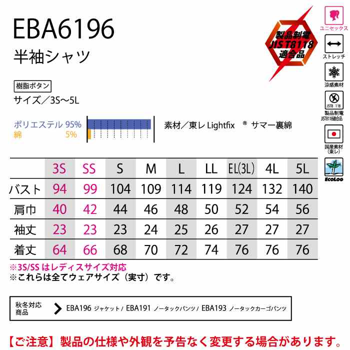 【EBA6196 半袖シャツ】