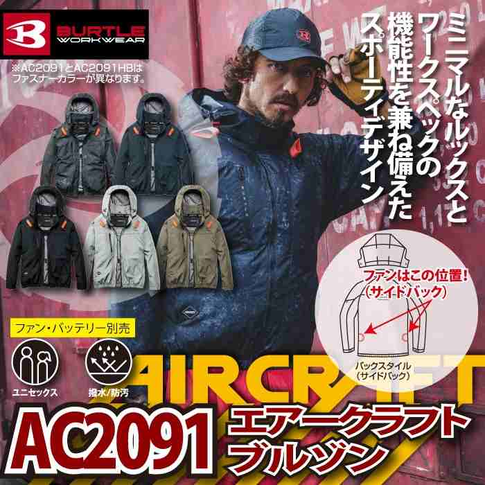ユニセックス UV フード付き バートル BURTLE 作業着 2026春夏新作 エアークラフト AC2091 ACブルゾン S-XXL 作業服 単品 撥水 遮熱 サイドバック