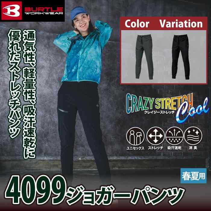 バートル BURTLE 作業着 作業ズボン 2026春夏新作 4099 ジョガーパンツ S-XL 作業服 おしゃれ ドライ 冷感