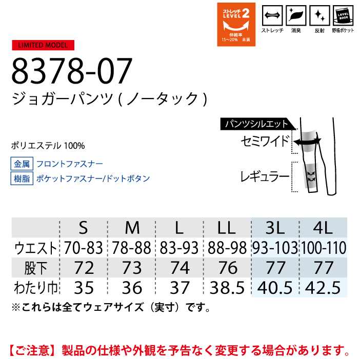 桑和 SOWA 作業服 8378-07 ジョガーパンツ(ノータック) 4L 春夏用 作業着 ソーワ ワークウェア