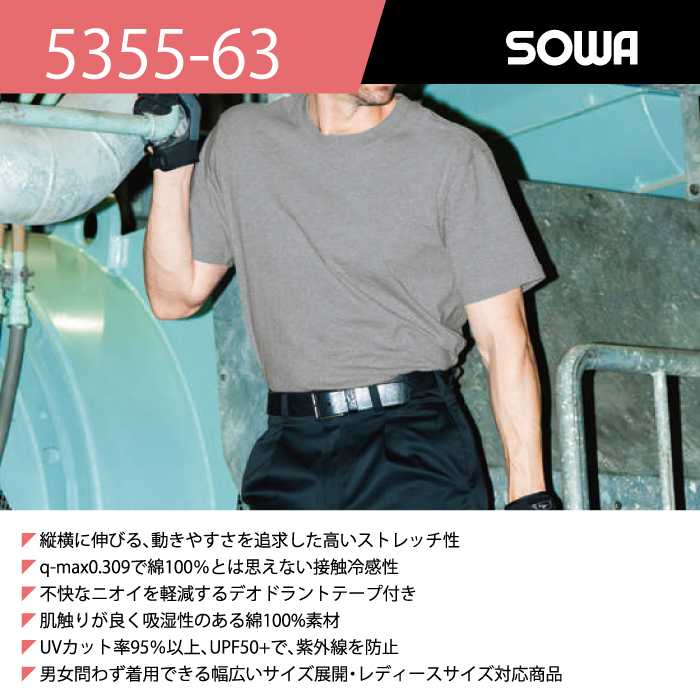 桑和 SOWA 作業服 5355-63 半袖Tシャツ(胸ポケット無) SS-3L 春夏用 作業着 ソーワ ワークウェア