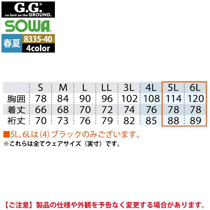 ◇サイズ:S・M・L・LL・3L・4L・5L・6L(5L・6Lはブラックのみ)