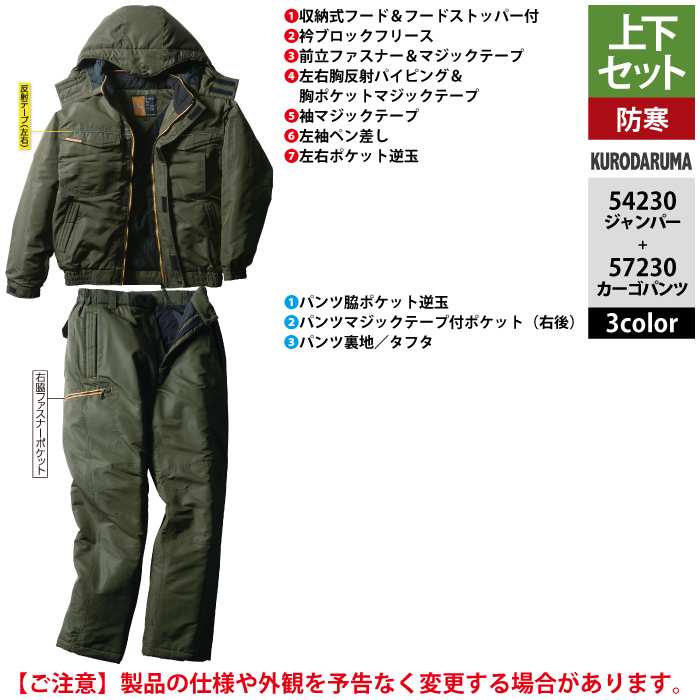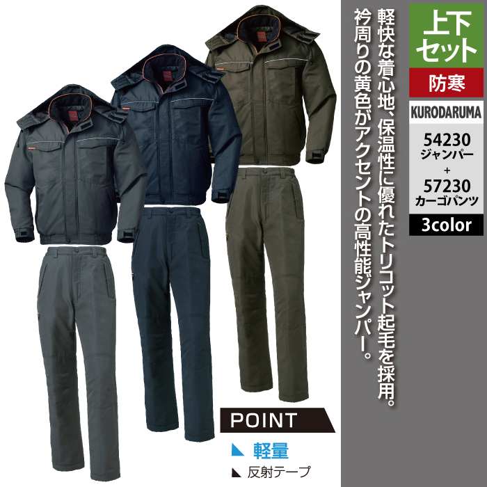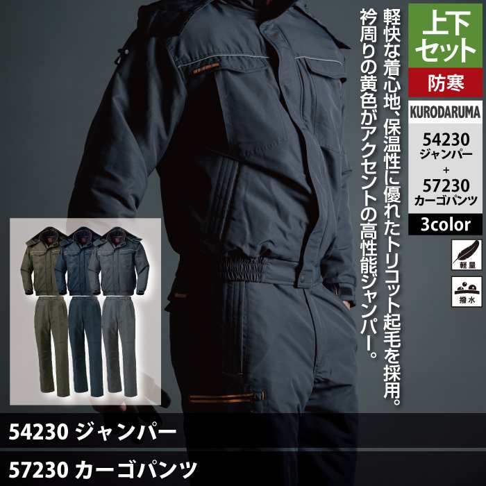 作業服 作業着 クロダルマ 作業服 上下セット 54230 ジャンパーSS-3L と 57230 カーゴパンツ SS-3L 作業着 作業ズボン 秋冬用