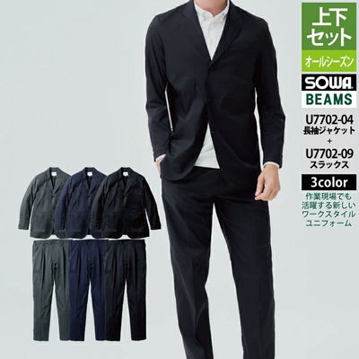 桑和 SOWA 作業服 上下セット U7702-04 長袖ジャケットS-3L と U7702-09 スラックス S-3L 作業着 作業ズボン オールシーズン