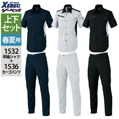 ジーベック XEBEC 作業服 上下セット 春夏 1532 半袖シャツSS-3L と 1536 ピタリティカーゴパンツ 70-100 作業ズボン 作業着
