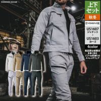 イーブンリバー EVENRIVER 作業服 上下セット US1607 ストレッチジャケットS-3L と US1603 ストレッチファスナーカーゴ S-4L 作業着 作業ズボン
