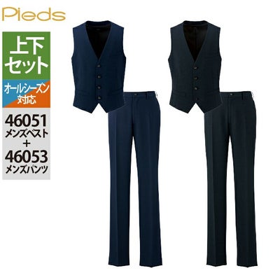 オフィス 事務 ビジネスウェア オフィスウェア 上下セット 46051 メンズベスト と 46053 メンズパンツ 作業着 作業ズボン オールシーズン アイトス Aitoz