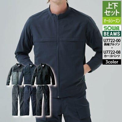 桑和 SOWA 作業服 上下セット U7722-00 長袖ブルゾンS-3L と U7722-08 カーゴパンツ S-3L 秋冬 作業着 作業ズボン BEAMS ビームス