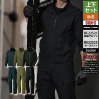 サンエス 作業服 上下セット RE22521 長袖ブルゾン S-3L と RE22525 カーゴパンツ S-3L ユニセックス 秋冬 作業着 作業ズボン