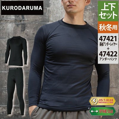 クロダルマ 作業服 上下セット 47421 長袖アンダーレイヤーS-3L と 47422 アンダーパンツ S-3L インナー 作業着 作業ズボン