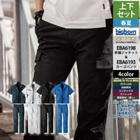 ビッグボーン bigborn 作業服 上下セット EBA6198 半袖ジャケットS-3L と EBA6193 ノータックカーゴパンツ 62-100 春夏 作業着 作業ズボン