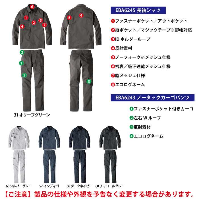 【EBA6245 長袖シャツ】