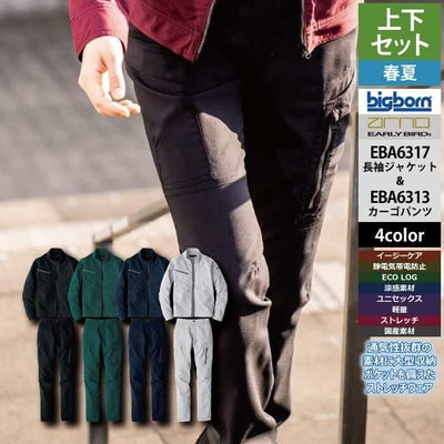 ビッグボーン 作業服 作業着 ビッグボーン bigborn 作業服 上下セット EBA6317 長袖ジャケットS-3L と EBA6313 ノータックカーゴパンツ S-3L 春夏 作業着 作業ズボン