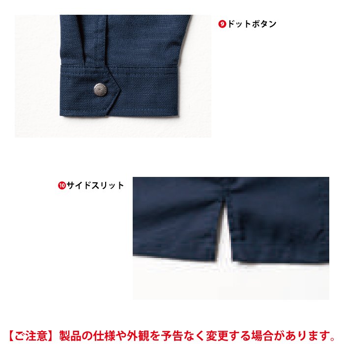 ◇機能:ファスナー隠し・胸ファスナーポケット・デオドラントテープ・ノーフォークメッシュ・ドットボタン(隠し)・反射パイピング・両側袖ペン差し・胸ポケット・ドットボタン・サイドスリット・ユニセックス対応