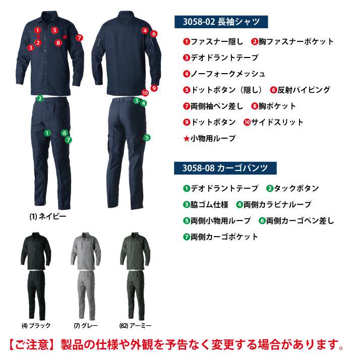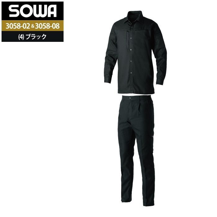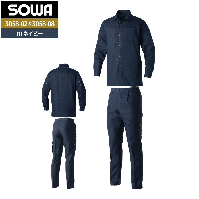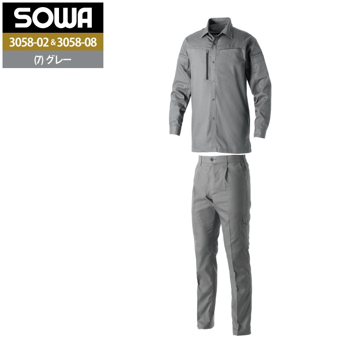 桑和 作業服 作業着 桑和 SOWA 作業服 上下セット 3058-02 長袖シャツS-3L と 3058-08 カーゴパンツ(ワンタック脇ゴム) GS-3L 作業着 作業ズボン 春夏用