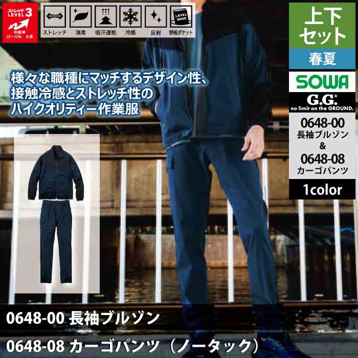 桑和 作業服 作業着 桑和 SOWA 作業服 上下セット 0648-00 長袖ブルゾンS-3L と 0648-08 カーゴパンツ(ノータック) S-3L 作業着 作業ズボン 春夏用