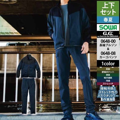 桑和 SOWA 作業服 上下セット 0648-00 長袖ブルゾンS-3L と 0648-08 カーゴパンツ(ノータック) S-3L 作業着 作業ズボン 春夏用
