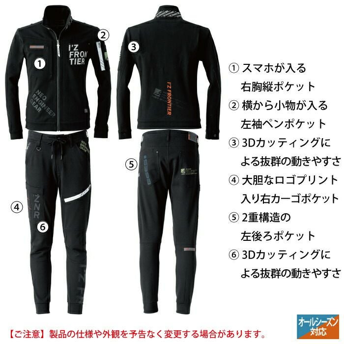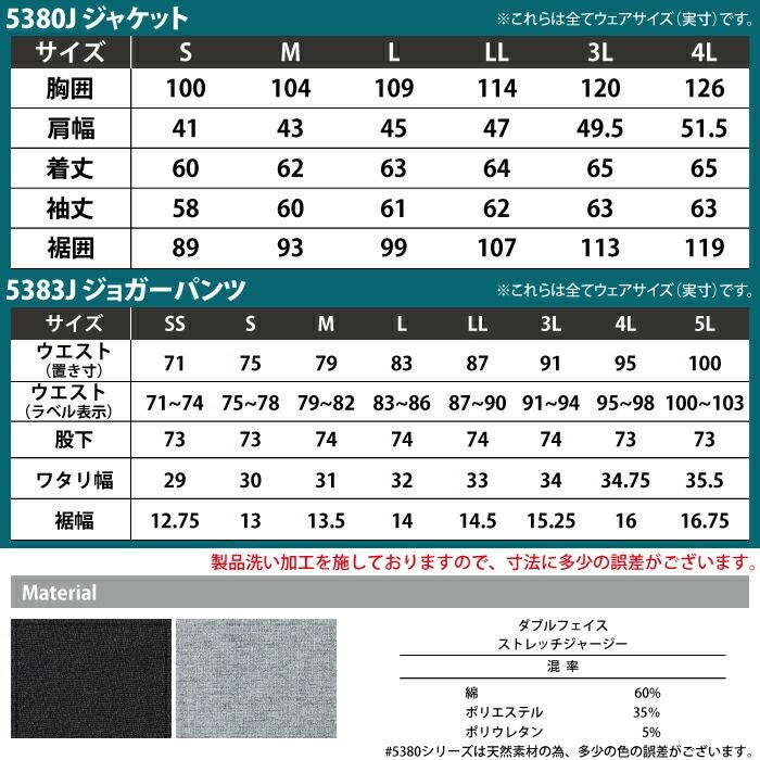 アイズフロンティア 作業服 作業着 作業ズボン アイズフロンティア 作業服 上下セット 5380J ジャケット と 5383J ジョガーパンツ ニット ジャージー ストレッチ 秋冬