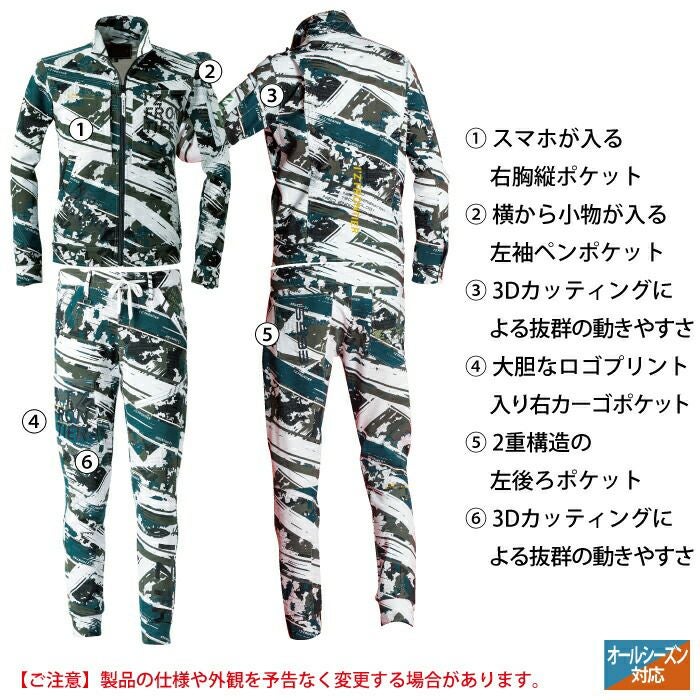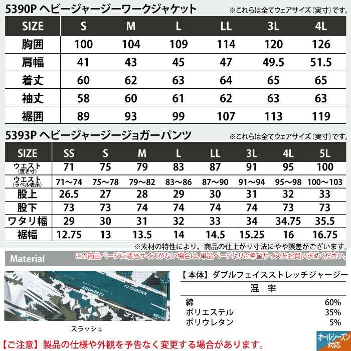 アイズフロンティア 作業服 作業着 作業ズボン アイズフロンティア 作業服 上下セット 5390P ヘビージャージカモフラワークジャケット と 5393P ジャージカモフラジョガーパンツ 秋冬用