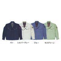 ●バンザイカット、プリーツロン、ストレッチ、帯電防止素材、安心設計、JIS T8118規格適合、樹脂ファスナー、樹脂ボタン、ネイビー系