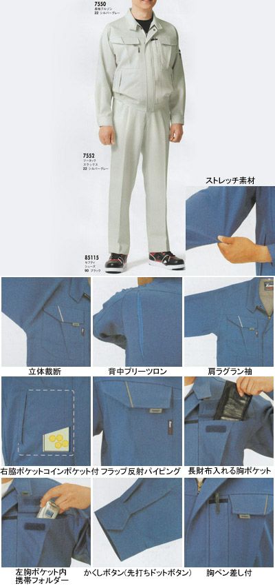 作業着 作業服 ジーベック XEBEC 作業服 7550 長袖ブルゾン S-5L ストレッチ 秋冬用 作業着