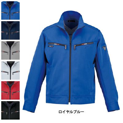 ●NEWバンザイカットと伸縮ニットアームホールの組合せで動きやすい。前屈作業でも背中が出にくい後帯ラウンドデザイン。オリジナルマルチファスナー付ポケットで安心収納。左袖ペン差し。袖カフス樹脂ドットボタン。左胸ポケット内携帯電話収納ポケット