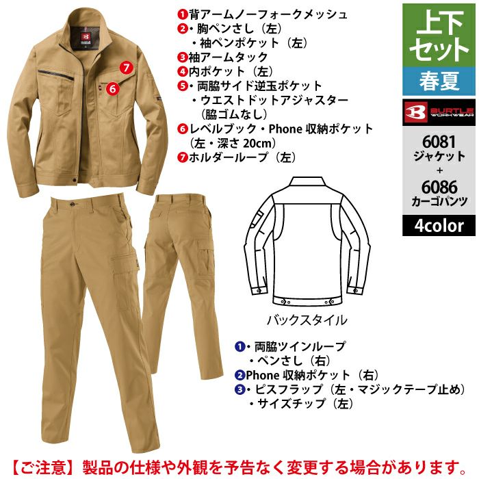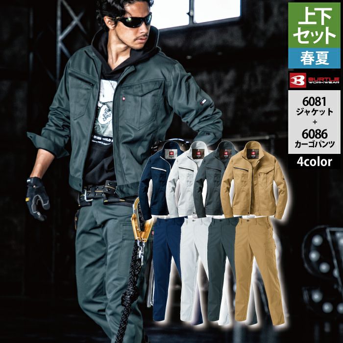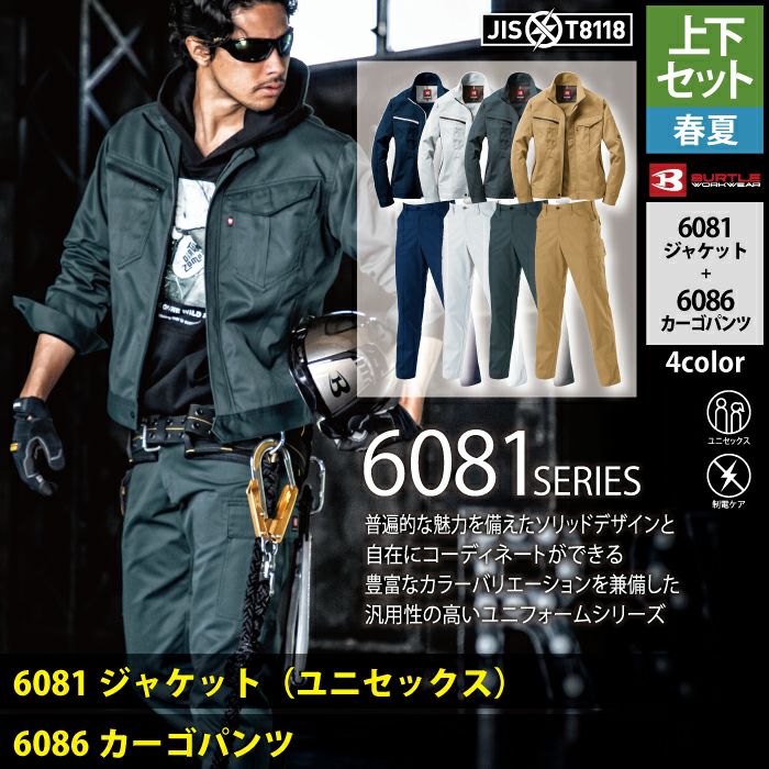バートル BURTLE 作業着 上下セット 6081 と 6086 ジャケットセットアップ SS-LL 作業服 おしゃれ 春夏 JIS適合制電 作業ズボン