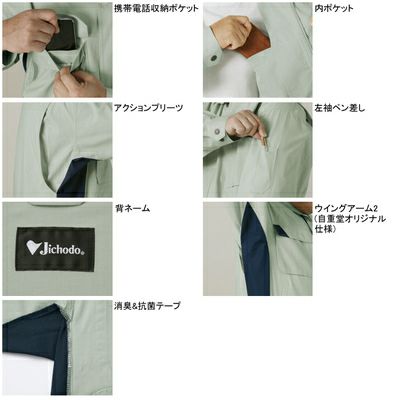 ●関連商品※86400難燃長袖ブルゾン※86404難燃長袖シャツ※82420難燃続服(年間定番生地使用)●春夏用●素材/ブレバノプラスポプリン 綿55%アクリル系45%●携帯電話収納ポケット、内ポケット、アクションプリーツ、左袖ペン差し、背ネーム、ウイングアーム2(自重堂オリジナル仕様)、消臭&抗菌テープ●サイズ:S(胸囲/112、肩幅/47、袖丈/53、着丈/62)、M(胸囲/116、肩幅/49、袖丈/55、着丈/64)、L(胸囲/120、肩幅/51、袖丈/57、着丈/66)、LL(胸囲/124、肩幅/53、袖丈/59、着丈/68)、EL(胸囲/128、肩幅/55、袖丈/59、着丈/70)、4L(胸囲/132、肩幅/57、袖丈/60、着丈/70)、5L(胸囲/140、肩幅/61、袖丈/60、着丈/72)●カラー:ネイビー、アースグリーン、ダークブルー