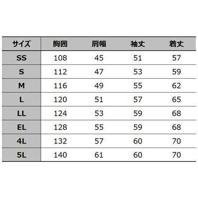 ●関連商品※86600長袖ジャンパー※86601ワンタックパンツ※86602ワンタックカーゴパンツ※86604長袖シャツ※86606レディースワンタックパンツ(裏付)※86610半袖ジャンパー●春夏用●素材/裏綿トロ ポリエステル95%綿5%●背当てメッシュ 清涼感があるメッシュの背当て、アクションプリーツ 腕がつっぱらないアクションプリーツ、内ポケット、携帯電話収納ポケット、左袖ペン差し、背ネーム、脇ファスナー(メッシュ付)、脇ファスナー(閉じ時)、消臭&抗菌テープ●サイズ:SS(胸囲/108、肩幅/45、袖丈/51、着丈/57)、S(胸囲/112、肩幅/47、袖丈/53、着丈/59)、M(胸囲/116、肩幅/49、袖丈/55、着丈/62)、L(胸囲/120、肩幅/51、袖丈/57、着丈/65)、LL(胸囲/124、肩幅/53、袖丈/59、着丈/68)、EL(胸囲/128、肩幅/55、袖丈/59、着丈/68)、4L(胸囲/132、肩幅/57、袖丈/60、着丈/70)、5L(胸囲/140、肩幅/61、袖丈/60、着丈/70)●カラー:シルバー、ネイビー、アースグリーン