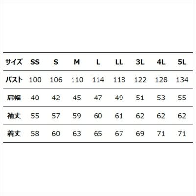 ●関連商品※5511HBジャケット※5512HBカーゴパンツ※5515HB長袖シャツ※5519HBレディースカーゴパンツ●春夏用●素材:綿100%●Phone収納ループ(右胸)●内ポケット(左)●背ノーフォーク●袖ペンポケット(左)●ウエストドットアジャスター(脇ゴムなし)●サイズ:SS(バスト/100、肩幅/40、袖丈/55、着丈/58)、S(バスト/106、肩幅/42、袖丈/57、着丈/60)、M(バスト/110、肩幅/45、袖丈/59、着丈/63)、L(バスト/114、肩幅/47、袖丈/60、着丈/65)、LL(バスト/118、肩幅/49、袖丈/61、着丈/67)、3L(バスト/122、肩幅/51、袖丈/62、着丈/69)、4L(バスト/128、肩幅/53、袖丈/62、着丈/71)、5L(バスト/134、肩幅/55、袖丈/62、着丈/71)●カラー:ブラック