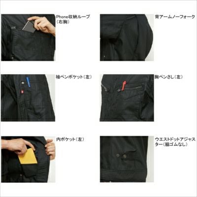 ●関連商品※5511HBジャケット※5512HBカーゴパンツ※5515HB長袖シャツ※5519HBレディースカーゴパンツ●春夏用●素材:綿100%●Phone収納ループ(右胸)●内ポケット(左)●背ノーフォーク●袖ペンポケット(左)●ウエストドットアジャスター(脇ゴムなし)●サイズ:SS(バスト/100、肩幅/40、袖丈/55、着丈/58)、S(バスト/106、肩幅/42、袖丈/57、着丈/60)、M(バスト/110、肩幅/45、袖丈/59、着丈/63)、L(バスト/114、肩幅/47、袖丈/60、着丈/65)、LL(バスト/118、肩幅/49、袖丈/61、着丈/67)、3L(バスト/122、肩幅/51、袖丈/62、着丈/69)、4L(バスト/128、肩幅/53、袖丈/62、着丈/71)、5L(バスト/134、肩幅/55、袖丈/62、着丈/71)●カラー:ブラック